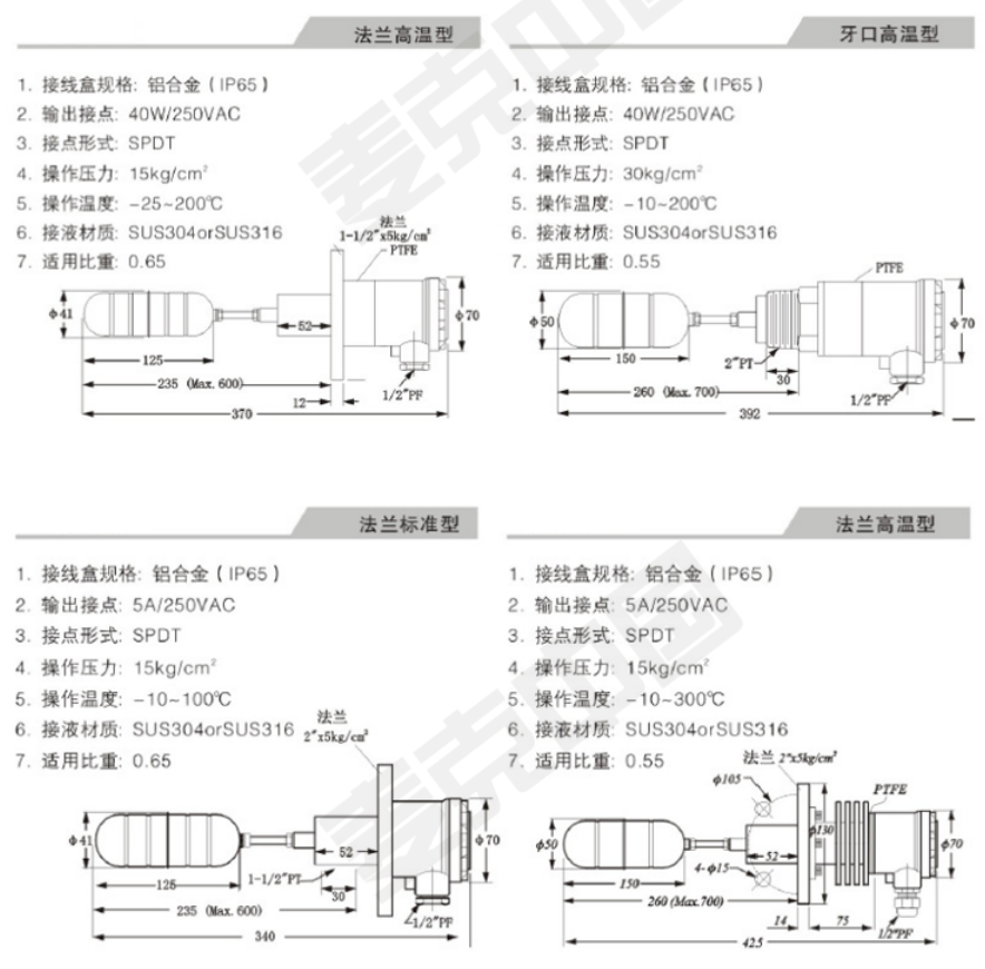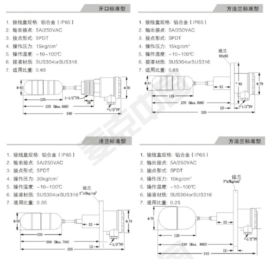 側(cè)裝式浮球開關(guān)是利用液體浮力原理,當(dāng)浮球液位開關(guān)因浮力作用而上下運(yùn)動(dòng)時(shí),接線盒