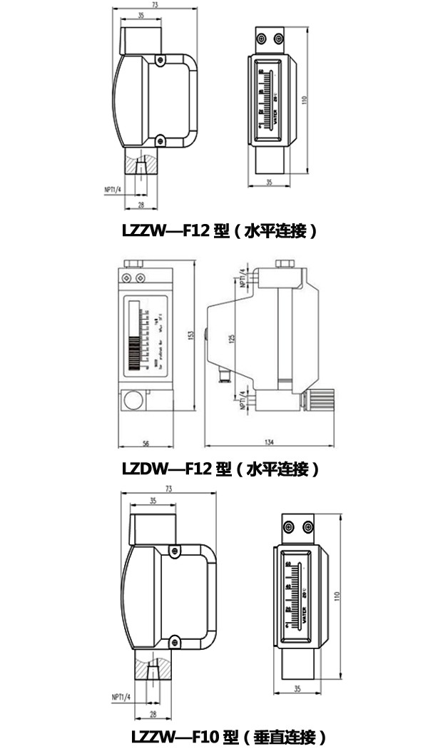 下進(jìn)上出型:1/4” NPT, 3/8” NPT, 1/2” NPT,3/4” NPT,1” NPT內(nèi)螺紋