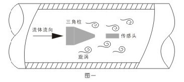 據(jù)來測量蒸汽,氣體及低粘度液體的流量。如圖一所示,在表體中垂直插入一根三角柱即旋渦的
