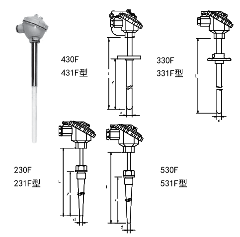 型號 | 分度號 | 涂層 | 測溫范圍℃ | 保護管直徑d | 規格 |